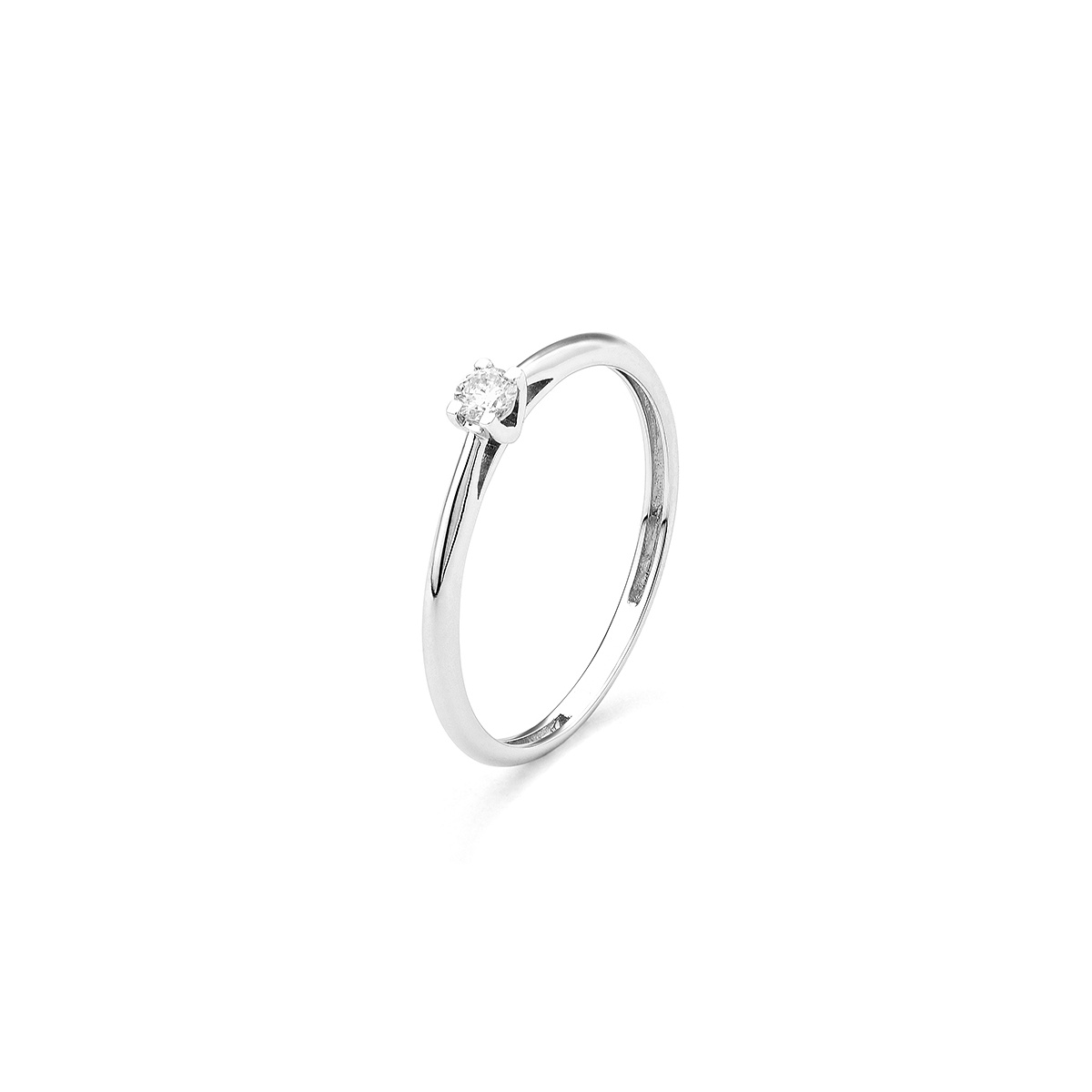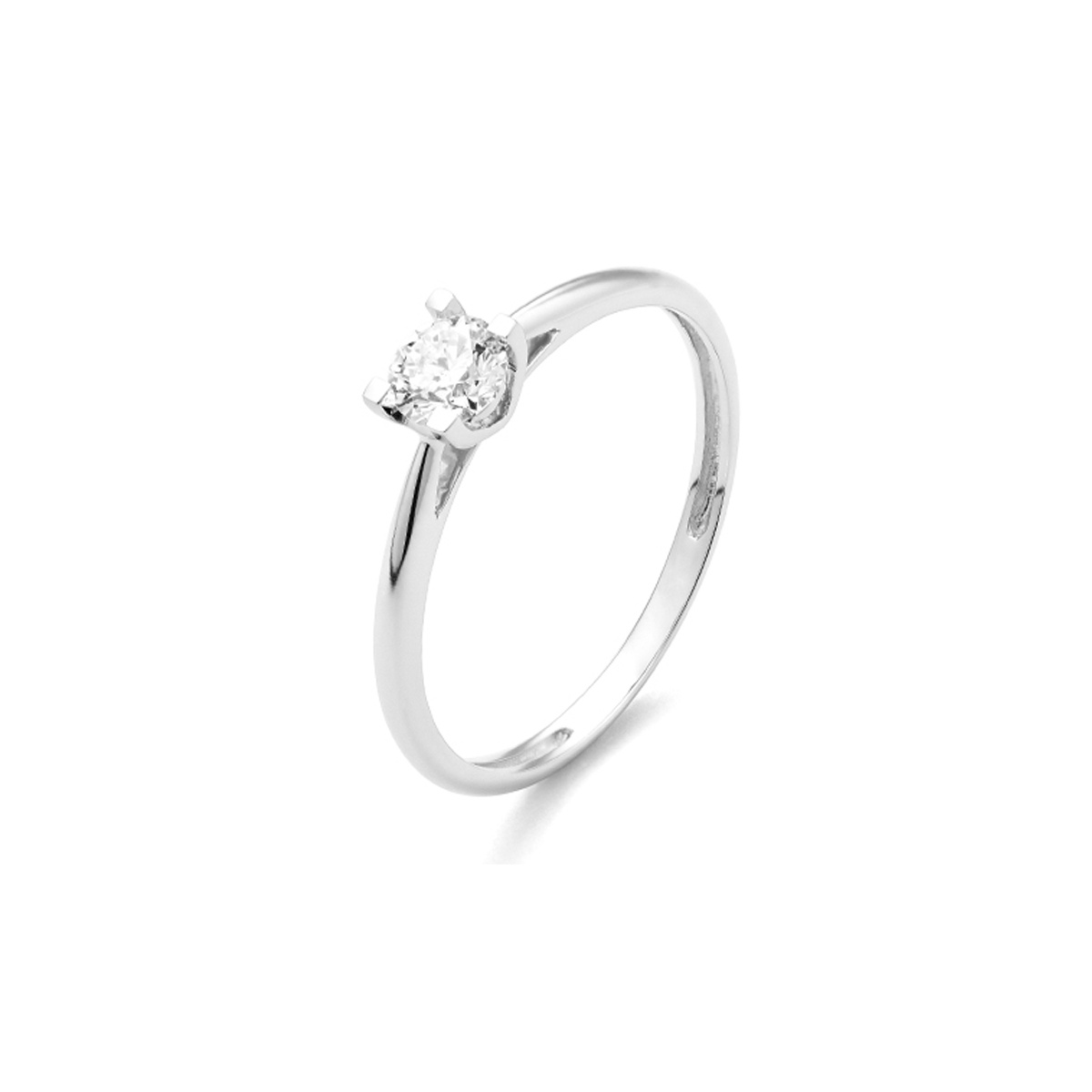 Anillo solitario de compromiso de oro blanco de 18K con diamante central en 4 garras de 0,30 quilates